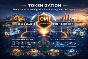 Each property acquired or integrated into the system contributes to the issuance of QM (QuadMeter) units, which represent a proportional link to the total volume of real estate within the REIT DAO ecosystem.